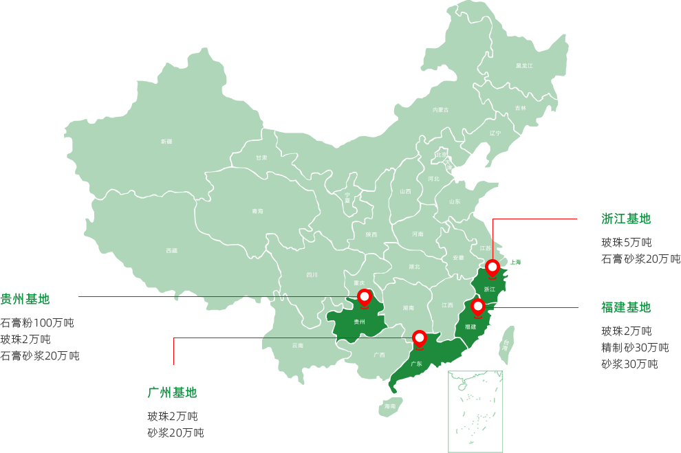 涟江在贵州建有全国最大的现代化脱硫石膏煅烧基地,在华东和华南地区建有最大的玻化微珠生产基地和石膏砂浆生产基地。此外,公司在上海总部同步打造综合性研发中心,拥有先进的科研检测设备、专业的研发团队、售后服务团队和机械化施工团队,专注于工业副产石膏处理再利用以及高性能新型绿色建材的研发与应用。