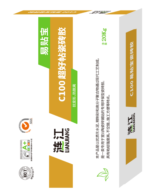 涟江易贴宝瓷砖胶是以优质脱硫石膏为无机胶凝材料,精制砂为骨料,并添加多种功能型助剂配制而成的绿色环保经济型瓷砖胶。该产品加水即用,相对于传统的水泥砂浆,铺贴简易,薄贴能有效节约空间。主要用于室内粘贴高吸水率瓷砖以及墙面找平使用。瓷砖铺贴:用于粘贴吸水率大于6%的瓷砖,一般粘贴厚度为5~20mm,具有优异的抗滑移性能和粘结强度;墙面找平:用于室内混凝土、加气混凝土砌块、水泥砂浆等墙面的找平,单层批抹厚度不大于10mm,具有保水性好(无需润湿基层)施工性能好、不开裂等优点。